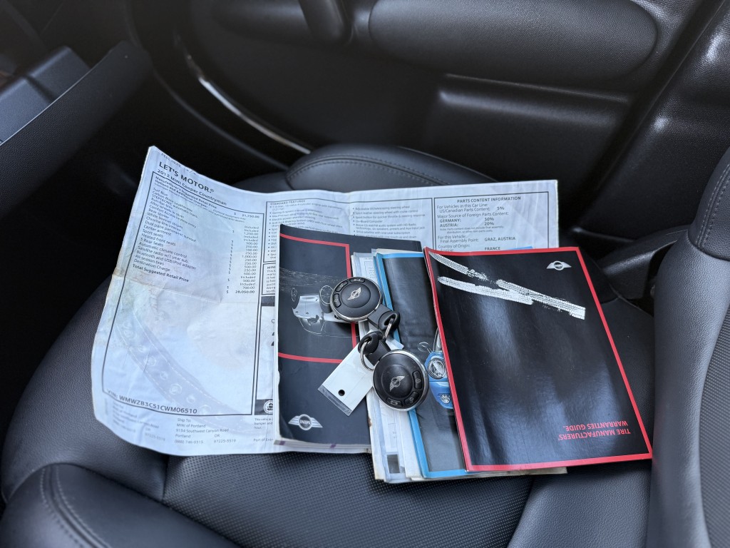 This well-maintained 2012 MINI Cooper Countryman is finished in a rare factory color and has been dealer-serviced on time at the MINI Cooper dealership. It runs and drives like new, has newer tires, and a recent oil change. Equipped with heated leather seats, a panoramic sunroof, Bluetooth, and more. Comes with both keys, original owner’s manuals, and the original window sticker. Clean title, no issues, and ready to drive. Hard to find in this condition and won’t last long.